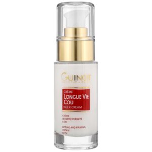 Guinot Crème Longue Vie Cou is a targeted neck and décolleté cream designed to firm, smooth, and rejuvenate the delicate skin in this often-neglected area. It’s part of Guinot’s renowned Longue Vie range, known for its regenerative cellular complex.